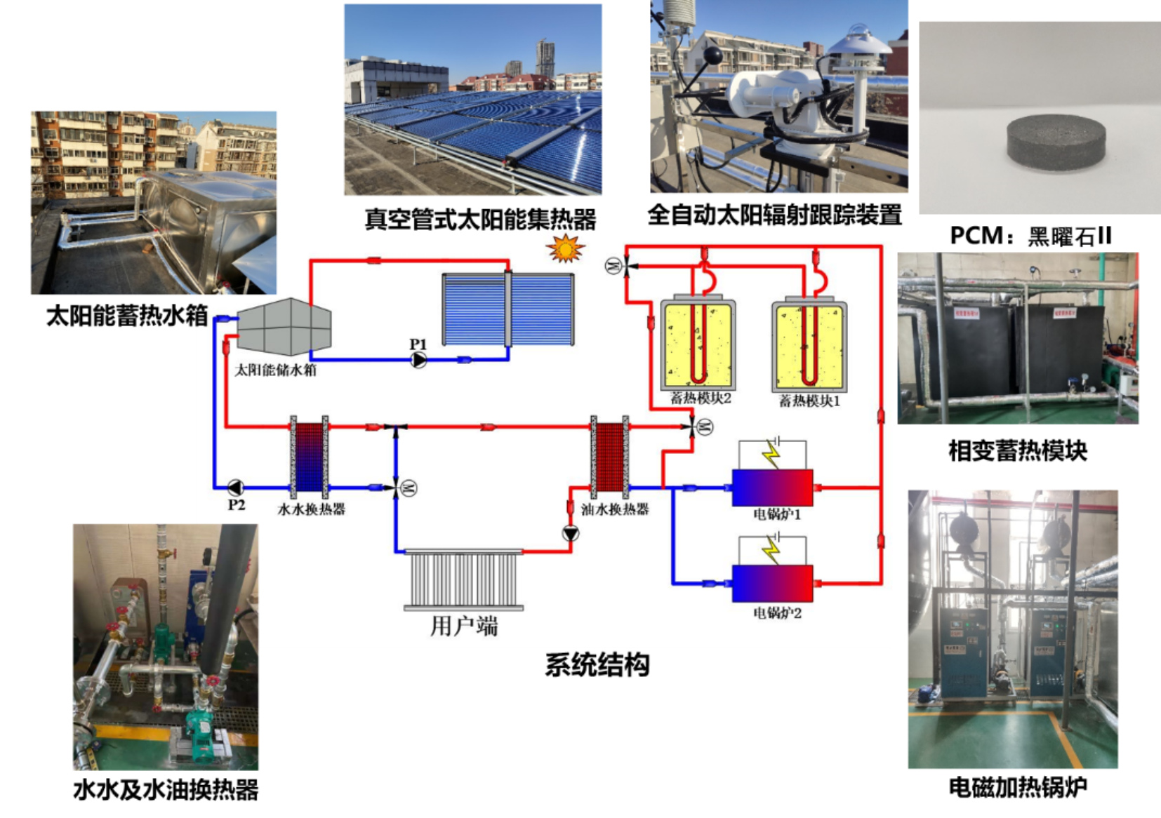 科研团队开发了“分布式太阳能耦合相变蓄热清洁供暖系统”和“太阳能光热耦合柔性供能系统”,与天津能源集团合作进行项目示范。采用太阳能光热、太阳能光伏、太阳能光伏光热、相变蓄能等技术,为建筑提供清洁绿色供暖。利用基于长短期记忆网络的模型准确预测太阳能集热量,自主研发的相变蓄热材料的蓄放热效率高达95%以上。项目研究成果被天津日报、北方网、津云等多家媒体报道。