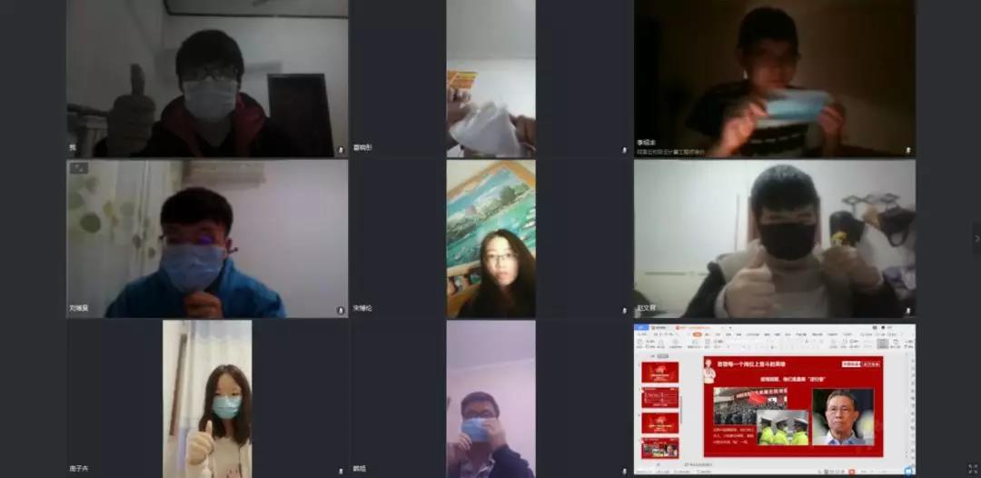 通过腾讯会议,同学们又以一种特别的方式相见了,大家相互调侃畅谈,在言语中也可以感受到同学们在为这场疫情攻坚战做着力所能及的贡献。