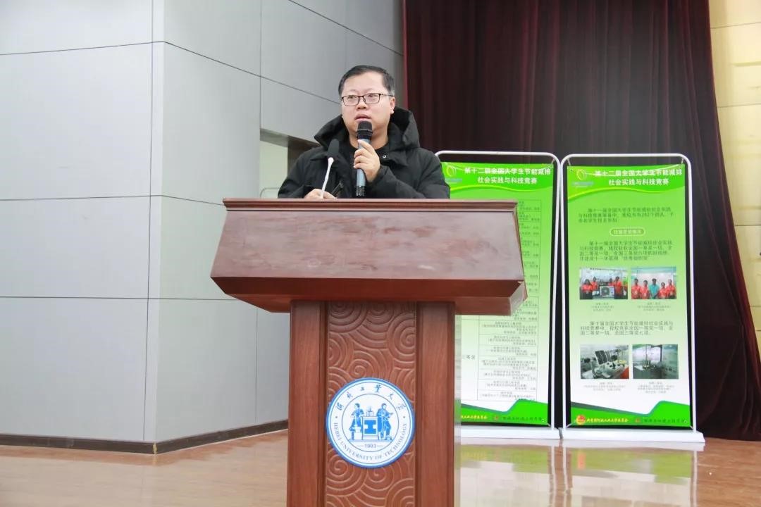 夏国强老师进行了备赛指导和经验分享。夏老师认为参赛作品应具有节能 、合理、实用、创新、亮眼的特点。夏教授强调项目一定要体现节能减排的主题,队伍的组成一定要合理,分工合作,学科交叉。不要过分追求技术,简单实用很重要。