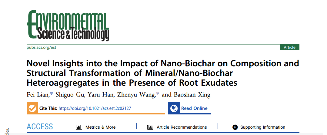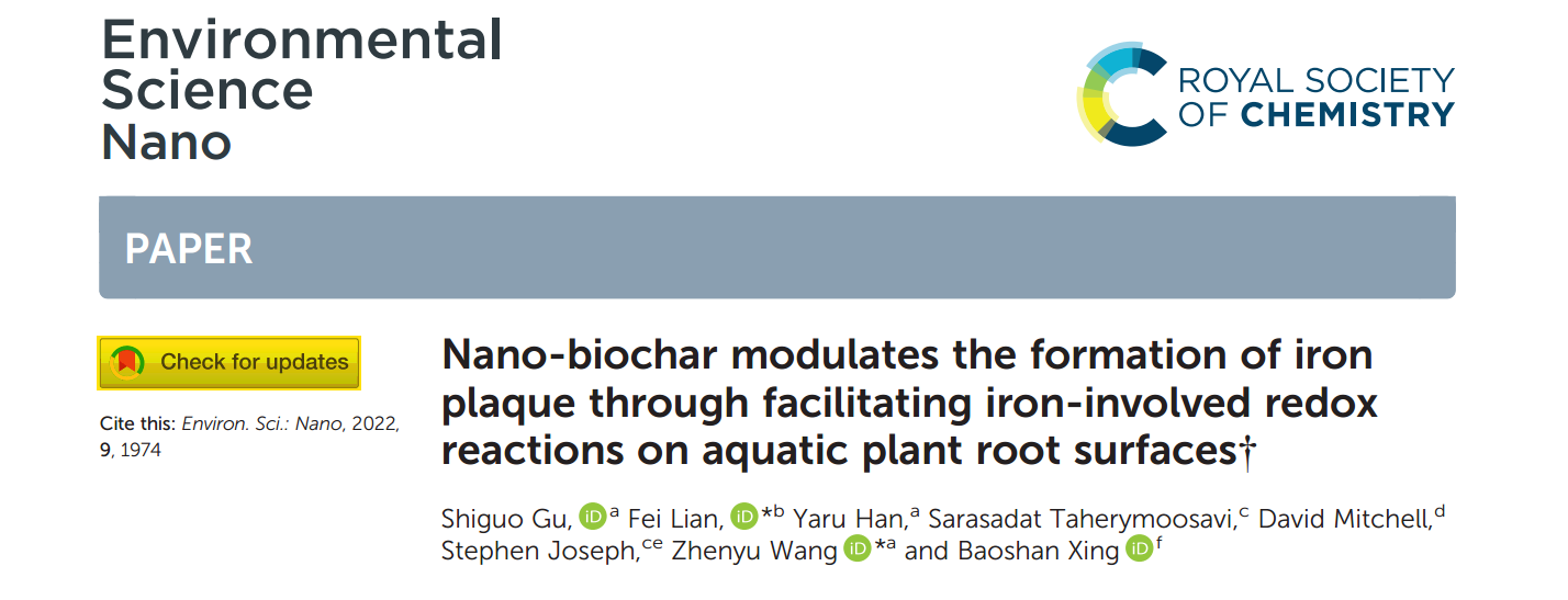 近日,bat365官网廉菲教授课题组在纳米生物炭的环境行为及其生态功能领域取得重要研究进展,相关成果分别以《Novel insights into the impact of nano-biochar on composition and structural transformation of mineral/nano-biochar heteroaggregates in the presence of root exudates》《Nano-biochar modulates the formation of iron plaque through facilitating iron-involved redox reactions on aquatic plant root surfaces》为题在线发表在环境领域著名期刊Environmental Science and Technology(IF: 9.028)和Environmental Science: Nano(IF: 8.131)。同时,第二篇论文被遴选为Environmental Science: Nano期刊的底封面论文(back cover)。该系列文章均以河北工业大学为第一署名单位,廉菲教授分别为第一和共同通讯作者。