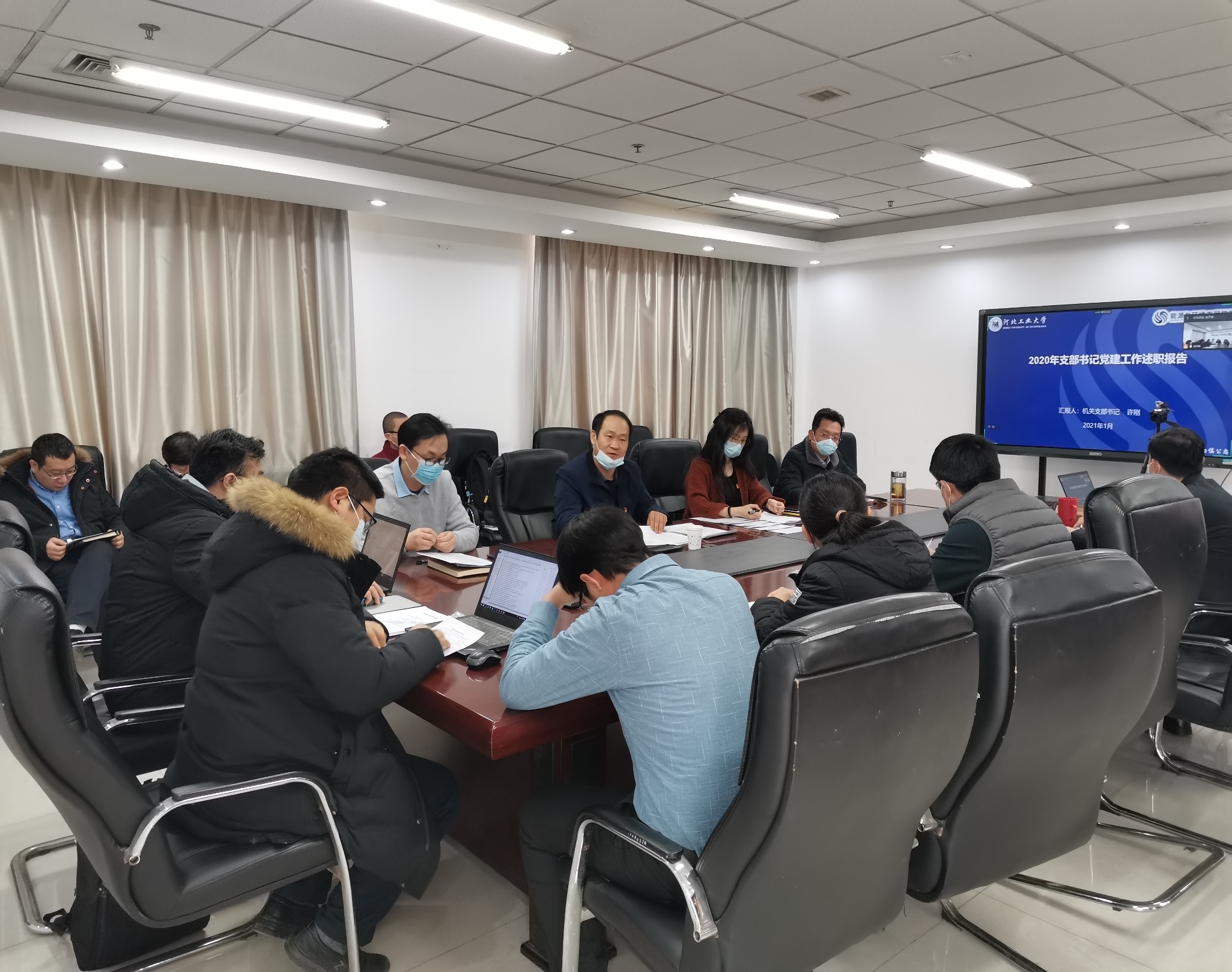 本次教工党支部2020年度党支部党建述职评议考核工作会议采取线下与线上相结合方式进行。机关党支部、能源系教工党支部、建环系教工党支部、环境系教工党支部、环保系教工党支部的分别从班子建设情况、教育管理情况、活动开展情况、制度落实情况和作用发挥情况五个方面对2020年度的工作做了总结,对查摆出的问题做了深刻分析并制定了切实可行的整改方案。商植桐书记在每位支部书记述职后分别进行了点评,在肯定成绩的同时,也指出各党支部的不足之处和今后党建工作的着力点。