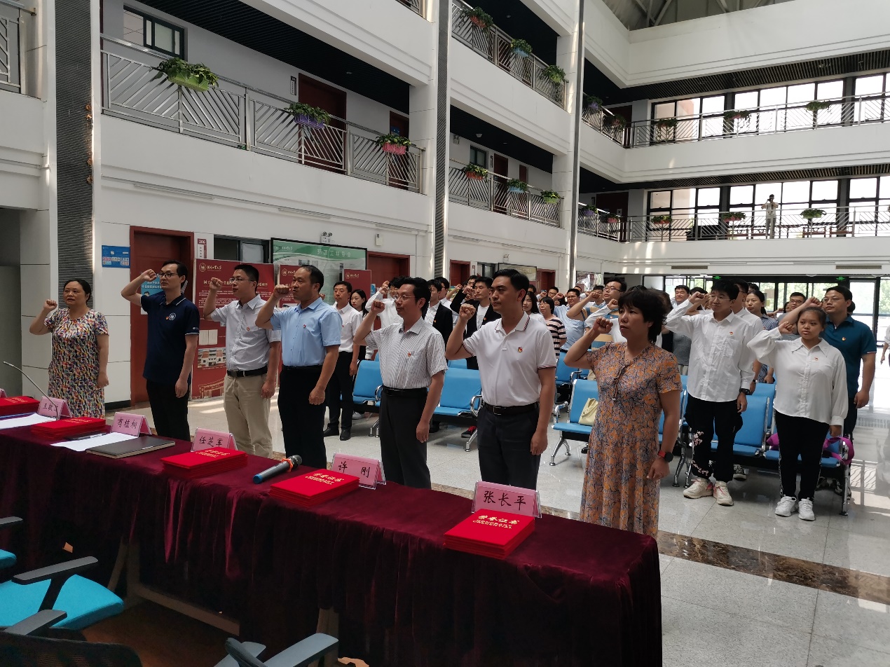 全体与会党员在学院党委书记商植桐同志带领下重温誓词:“我志愿加入中国共产党,……随时准备为党和人民牺牲一切,永不叛党。”重温入党誓词,就是恪守承诺,不忘初心,自觉奉献,不断进取,奋斗终身。