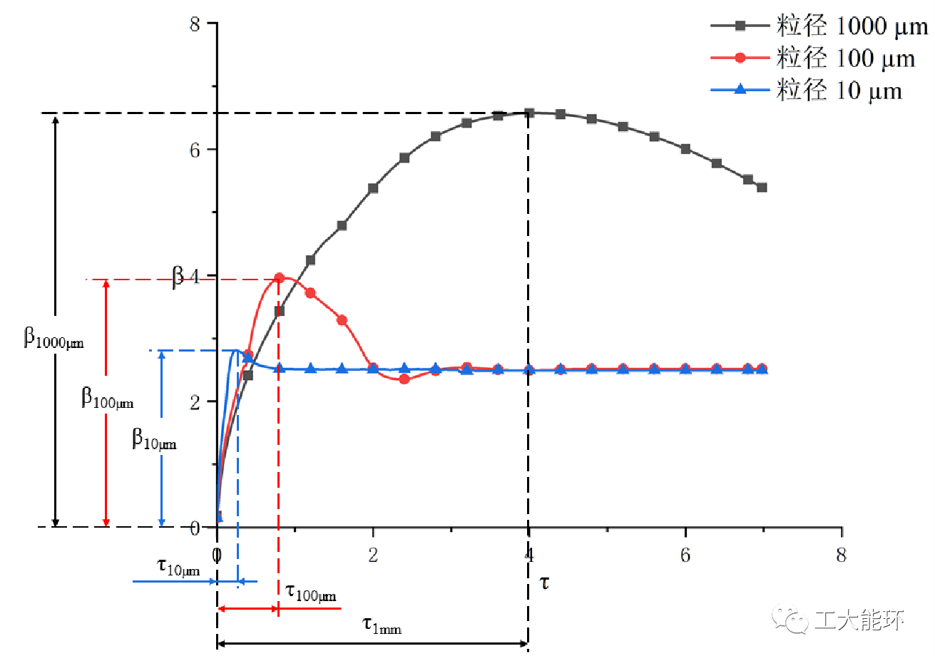 图6 不同粒径量级液滴无量纲铺展直径随总体无量纲时间的变化曲线图