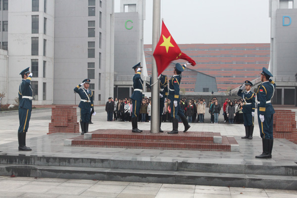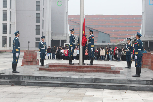 礼毕,学生代表环境161班王浩同学进行题为“爱国,是我的责任”的国旗下演讲,通过列举中国第一枚大型运载火箭“长征五号”的成功发射升空、亚洲第一架五代战机,世界第三款五代战机歼20的展览、中国北斗卫星导航系统的日渐成熟,并结合我们的日常生活,向全院同学发起“今天我以中国为荣,明天中国以我为荣”的呼吁。随后,教师代表张长平老师进行发言,她指出,长征并没有随着历史的远去而被人们淡忘,它的精神永远存在,我们更应该把这种精神应用到日常学习生活中去,努力学习科学文化知识,做一个紧跟时代的大学生。张长平老师的发言为同学们确立了目标,赢得热烈的掌声。最后,本次升旗仪式在主持人的总结中落下帷幕。