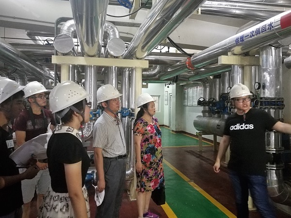 实践队在绿源公司工作人员的带领下前往鑫城小区换热站和人才家园地热井1号井进行近距离参观调研,对地热梯级利用、地热水回灌技术进行深度交流,并就经济性效益和能源利用率展开讨论。通过参观板式换热器、供热一次侧回水管路等实际设备,理论联系实践,更好的理解了“取热不取水”这一理念,将知识应用于实际,同时也切实了解了“雄县模式”中的地热开采回灌等技术问题,对供暖能力等有了更多理解。