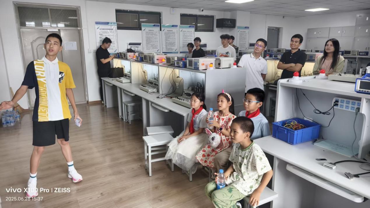 为深入贯彻习近平总书记关于科技创新的重要论述,扎实推进大中小学思政教育一体化,积极响应《教育强国建设规划纲要(2024-2035年)》“沃土计划”要求,落实课程思政结对共建成效,并值此中国共产党成立104周年即将到来之际,河北工业大学bat365中文官方网站联合电子信息工程学院、中汽工程工艺工程院第二党支部,于6月28日下午成功举办“强国有我·绿动未来”生态环保科普开放日活动。bat365中文官方网站党委书记张信、电子信息工程学院党委书记赵其波、中汽工程工艺工程院相关领导出席活动,与42组中小学生家庭共同开启了一场绿色科技探索之旅。