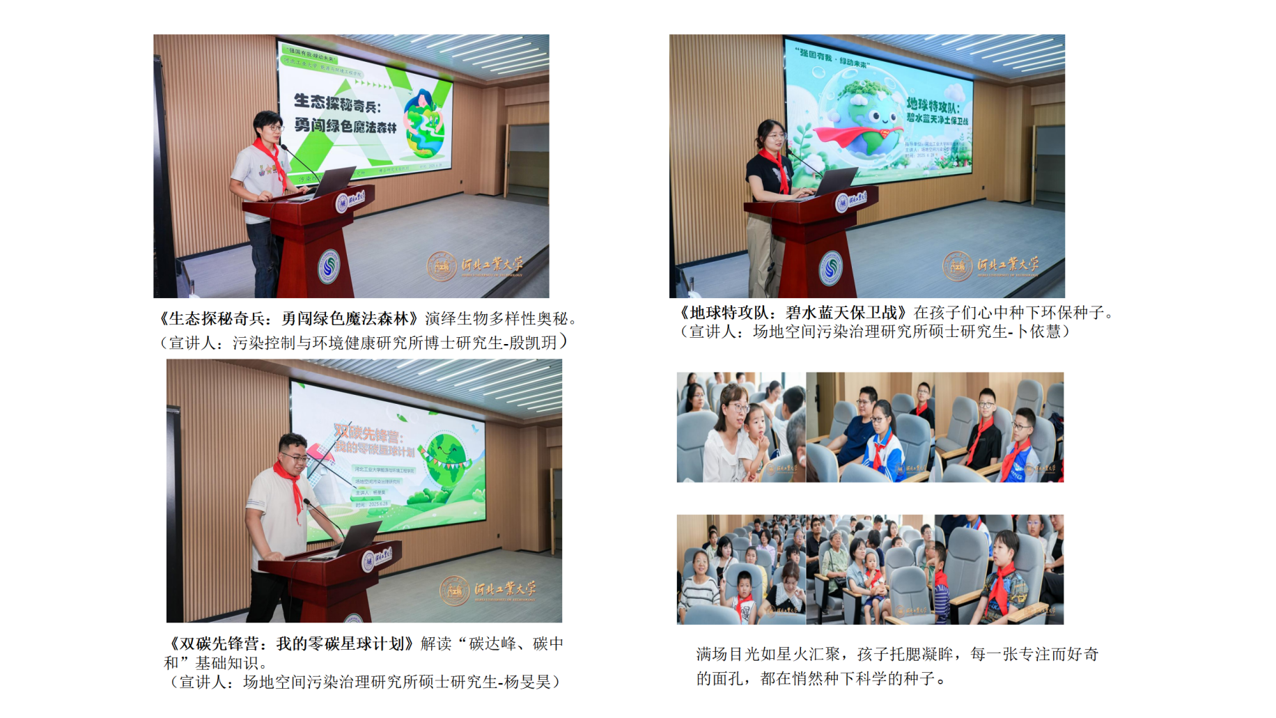 本次活动以“科普宣讲+实验探索+手工实践”为核心,精心设计了丰富多样的环节,为不同年龄段的参与者提供了沉浸式的生态环保科技体验。