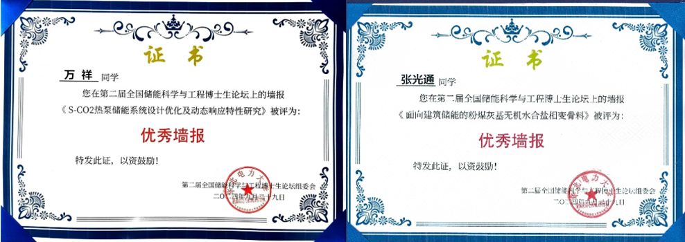 博士研究生张光通、万祥、于金秋和吴修文在会上分别以《面向建筑储能的粉煤灰基无机水合盐相变骨料》、《S-CO2热泵储能系统设计优化及动态响应特性研究》、《基于单相浸没式热管理的锂离子电池低温加热过程流动与传热特性研究》、《多孔翅片对Ca(OH)2/CaO储热床热质传递特性影响》为题进行了口头汇报,分享了他们在相关领域的研究成果。