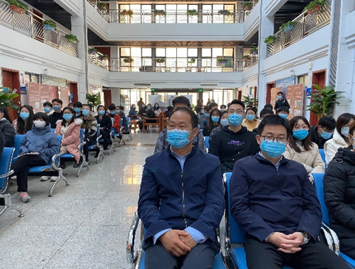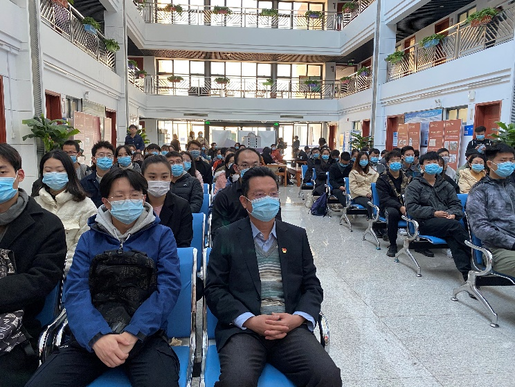 11月12日上午bat365中文官方网站在节能楼二楼大厅组织全院80余人师生党员代表观看十九届六中全会精神解读新闻发布会,其余师生党员在线上自行观看。